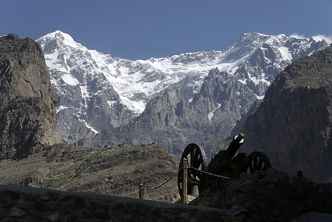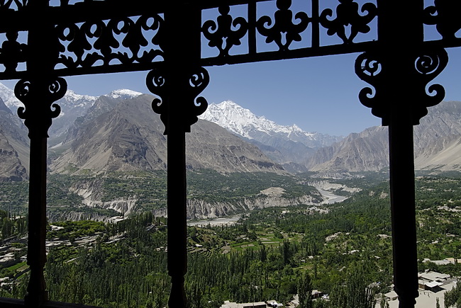 Unverkennbar sind die tibetischen Einflüsse im Baustil. Vom Fort hat man einen unvergleichlichen Blick auf die Umgebung von Karimabad und die Rakaposhi Kette. Ganz links am Bildrand der Diran.