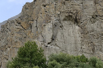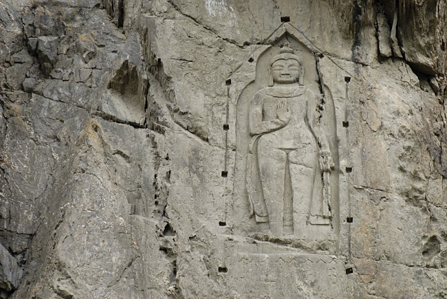 The Buddha statue near Kargah - about 10 km outside Gilgit - is dated back to the 6th to 7th century a time, when the Bön Religion was still dominating in Tibet. The statue is 4 m high and is most probably showing Buddha Maitreya (standing instead of sitting in Lotus Position). About 100 years before this statue was created, Bodhidharma - the founder of the Zen Buddhism - had traveled from Northern India to China and 100 years later Padmasambhava introduced the Buddhism to Tibet.