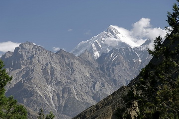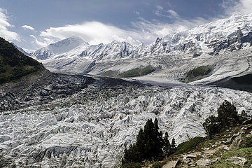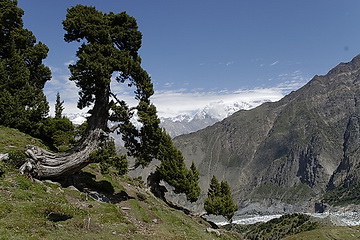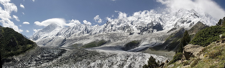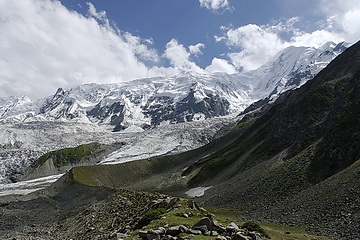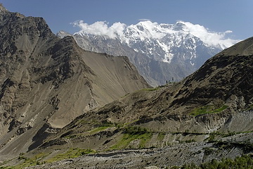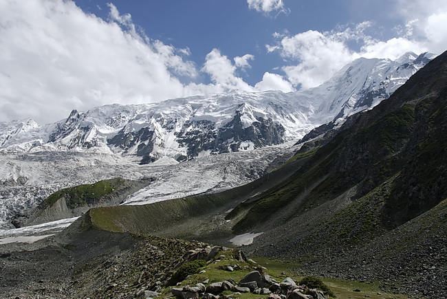 In south-eastern direction the valley widens until the north face of Diran (7266 m) appears in the background.
