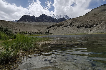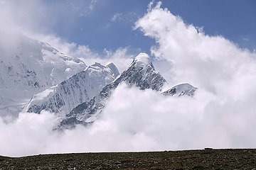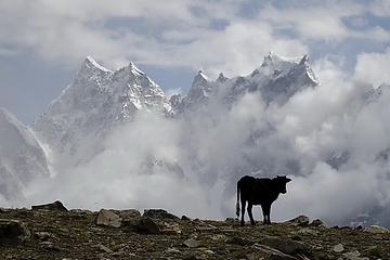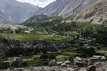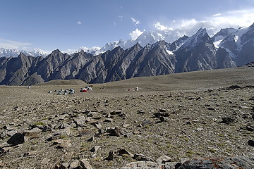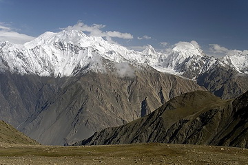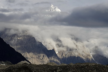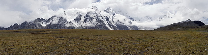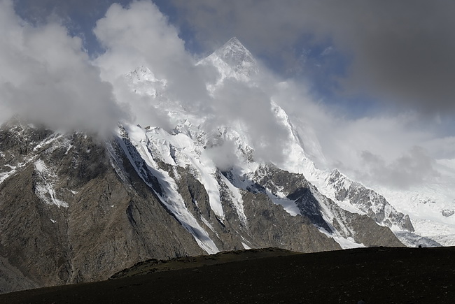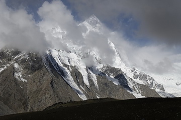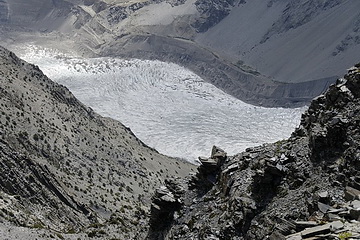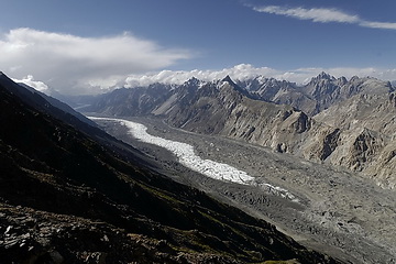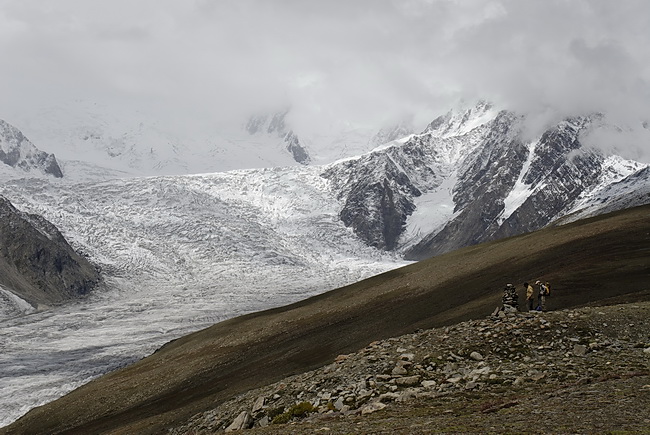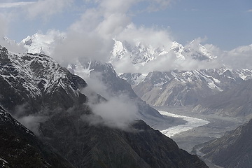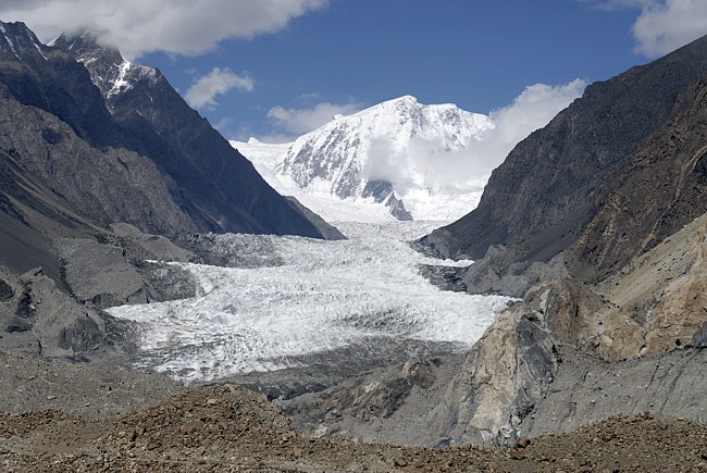 direction towards Kuk Sar (6935 m - partly in clouds) where the glacier