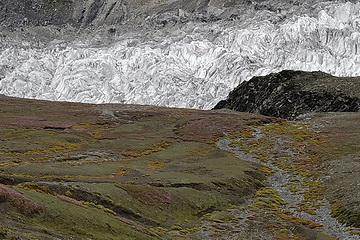 ab, wo der Ursprung des Gletschers an den Osthängen des Kampire
