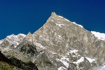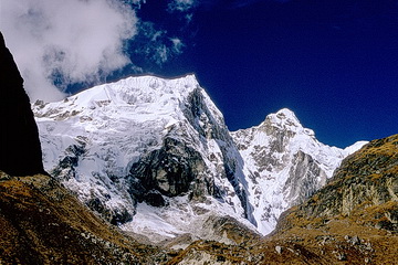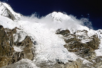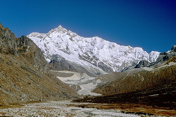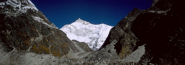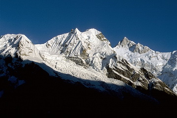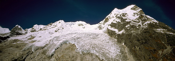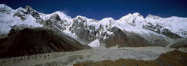 From a side-moraine above Sungmoteng we had a detailed view on the south-west face of Pandim and the Pandim Glacier.