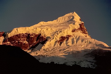 Von einer Seitenmoräne oberhalb Sungmoteng genossen wir den Blick auf die Südwestflanke des Pandim und den Pandim-Gletscher.