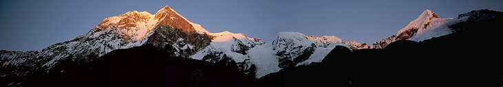 Oberhalb des Samathi Sees: Abendstimmung an Pandim und Jopuno (6010m). Above Samathi Lake: Evening view of Pandim and Jopuno (6010m). |