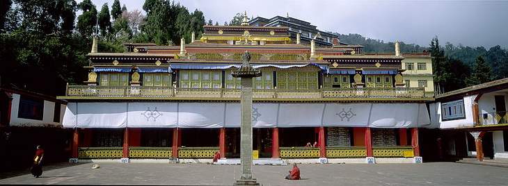 Oberhalb von Yuksam kann man das sehenswerte Kloster Dubdi, und in Yuksam selbst, die ehemalige Inthronisierungsstätte der Könige von Sikkim besuchen. Mit dem Bus fuhren wir weiter in die quirlige Hauptstadt Gangtok. Hier benutzten wir die Gelegenheit, das nahegelegene berühmte Kloster Rumtek zu besuchen. Nach einem kurzen Aufenthalt in der 'Hillstation' Kalimpong, wo wir zum letzten Mal einen Panoramablick auf das Kantsch-Massiv genießen konnten, ging die Fahrt entlang der Tista zu unserem Ausgangspunkt nach Bagdogra zurück. Da wir auf dem Rückflug nach Delhi einen 'Umweg' über Guwahati in Assam machten, konnten wir auf diesem Flug noch einmal fast die gesamte Himalaya-Kette von Bhutan bis Uttar Pradesh an uns vorbeiziehen sehen.