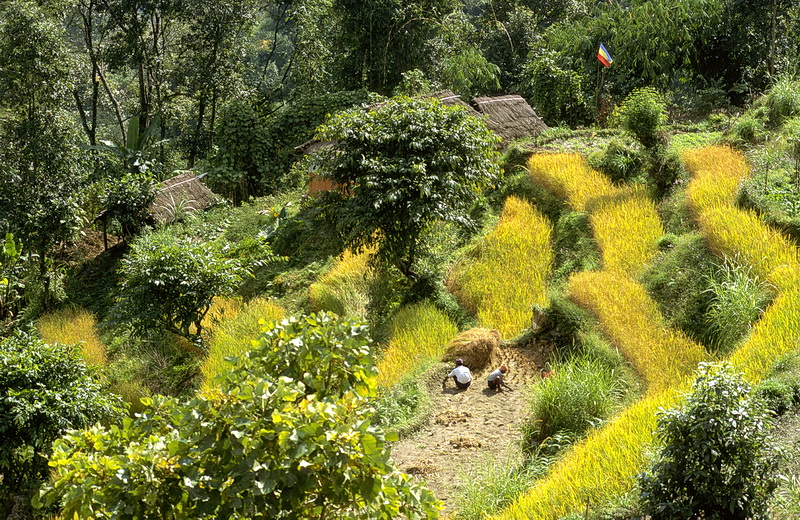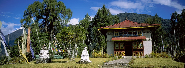 Above the village of Yuksam Dubdi Monastery is worth to be visited as well as the former enthronement place of the Sikkim Kings at Yuksam. By bus we drove to Gangtok and took the opportunity to visit the nearby Rumtek Monastery. At Kalimpong we were enjoying a final panorama of the Kangchenjunga Range bevor we drove back along the Tista Valley to Bagdogra. A detour via Guwahati in Assam was a final highlight on our flight back to Delhi as we passed the whole Himalaya Range from Bhutan to Uttar Pradesh.