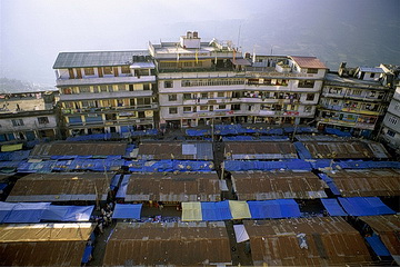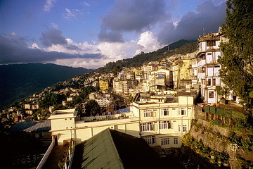 Gangtok and its market place seen from the 'Tashi Delek' Hotel in Gangtok.