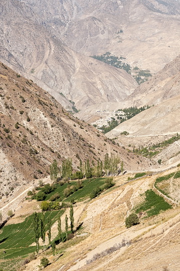Nach einer Übernachtung in einem familiären Gästehaus geht es von Zimtut zu Fuss auf einer Fahrstrasse bis nach Guitan und weiter über den Guitan Pass (2600 m) in 5-stündiger Wanderung hinunter zum Lager 5 am Chukurak See.