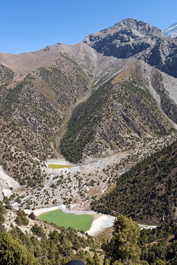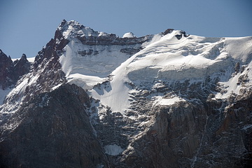 On the next day we hike up to the top of Chukarak pass (3.180) where we have a nice view of Lake Kulikalon and the glaciers of Adamtash (4700 m), Pik Promejutochny (4810 m), Mirali (5120 m) and Maria (4.970 m).