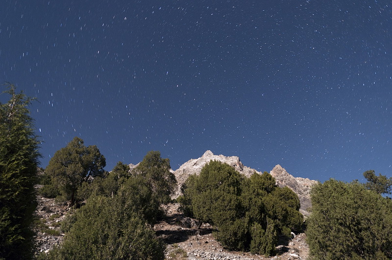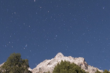Sterneraten um 9 Uhr abends: mit einer Belichtungszeit von 3 Minuten lässt sich auch der Polarstern leicht ausmachen (rechts oben).