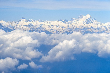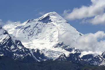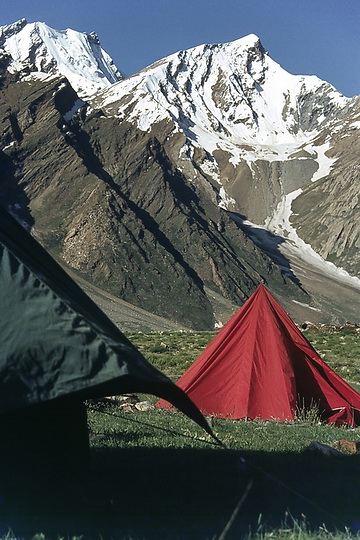 At our first camp the morning sun was lighting up the north faces of the Kun massif.