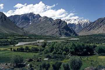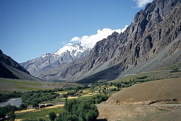 On a truck we took the road from Kargil alongside the Suru river up to Parkachik until the summits of Kun (7.133 m - center) and Nun (7.085 m - left) appeared.