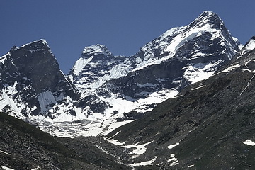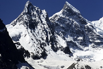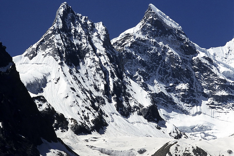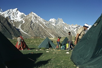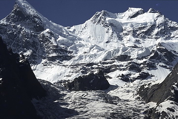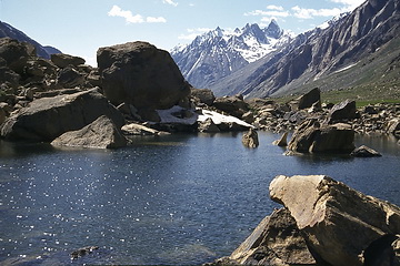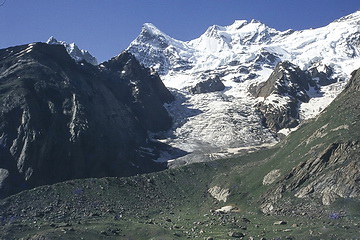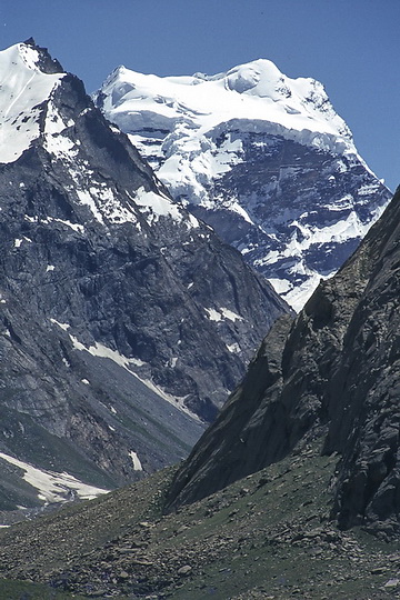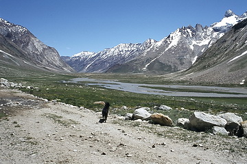 From time to time we met sheperds along the way. The valley in the right picture is leading to the Kun base camp, a 7.000 m peak which is climbed quite often. The glaciers in the background belong to Z1 (6.181m).