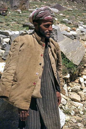 Immer wieder begegneten wir Ziegen- und Schafhirten. Das Tal im rechten Bild führt zum Basislager des Kun, eines relativ häufig bestiegenen Siebentausenders. Im Hintergrund die imposanten Hängegletscher des Z1 (6.181m).