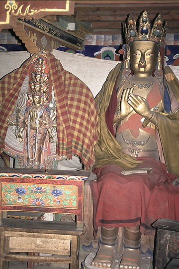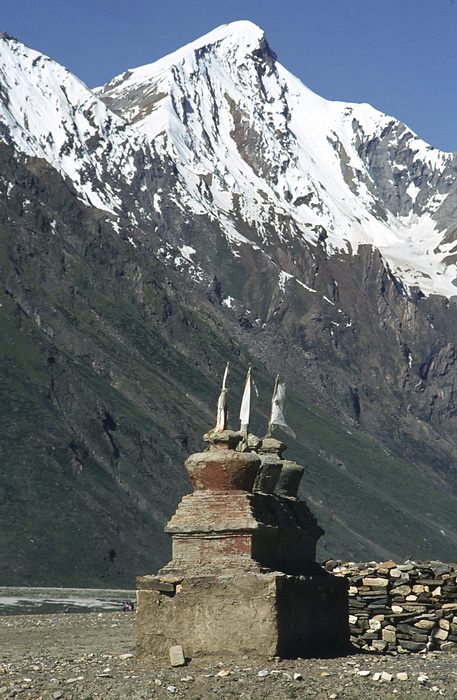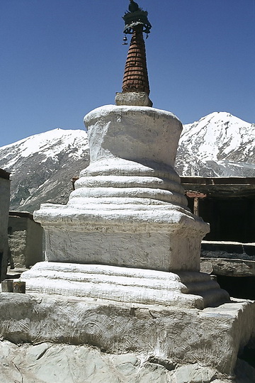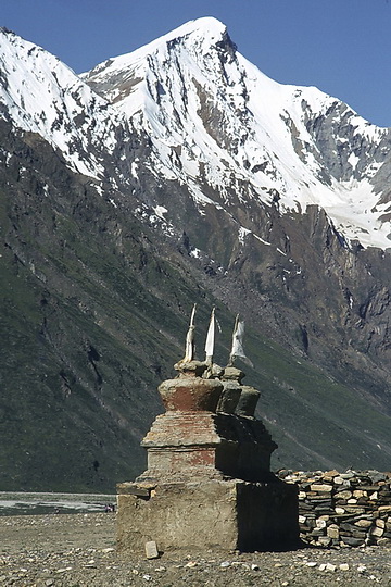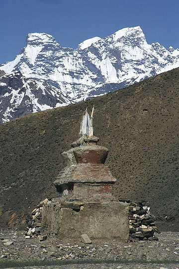At Yuldo we entered the Tibetan part of Ladakh. The triple group of stupas with mani walls is very common in Tibet.