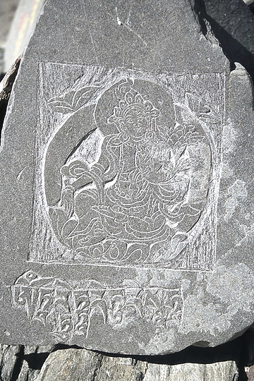 The relief shows Tara the 'mother of liberation' worshipped by many Tibetans because of her swift protection from fears and dangers.