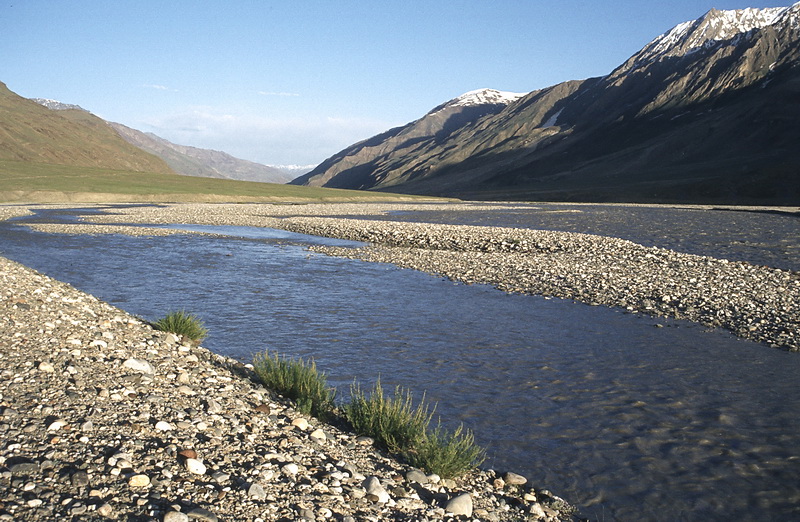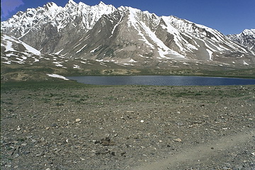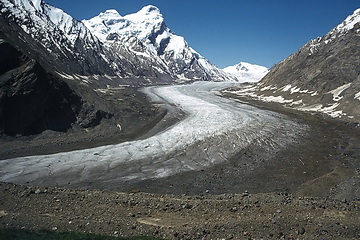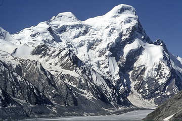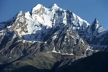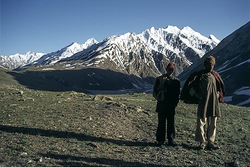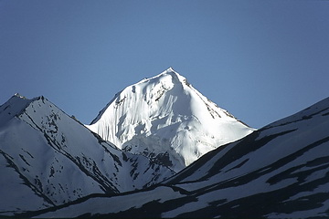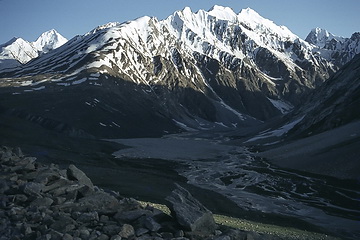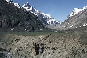 Durung Drung glacier south-east of Pensi La is one of the longest Himalayan glaciers with a length of 25 kms (see also satellite image). It is lined by the elegant twin peak of Z2 (6.270 m).