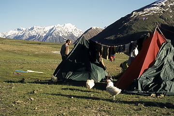 Having crossed the valley plain beyond Rangdung Gompa we set up our camp below the Pensi La pass.
