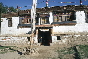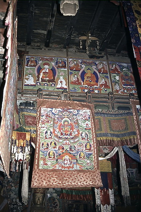 Die grosse Meditationshalle (Gompa) mit Statuen von Buddha Shakyamuni und Maitreya (sitzend), sowie Rollgemälde (Thankas) mit wichtigen Lehrern und Fresken verschiedener Tantrasysteme. Etwa 6 km sind es nach Padam, dem Hauptort Zanskars.