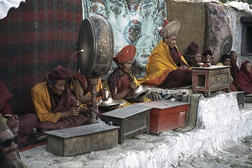 Gampopa was a follower of the yogi Milarepa whose teacher was Marpa the translator. Marpa had travelled across the Himalayas to India to meet his teacher Naropa and received the buddhist Mahamudra teachings. In the 11th century Naropa lived in Northern India and also stayed at Sani, meditating beneath a stupa built in the second century. To honour him, the Naro festival (Naro nasjal) is celebrated at Sani. The assembling hall of the monastery was built in the 17th century under the administration of Bardan monastary.
