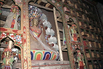 The meditation hall (Gompa) with statues of Buddha Shakyamuni and Maitreya (sitting) as well as Thankas showing important teachers and frescos of different Tantra systems. Padam the capital of Zanskar is just 6 km away.