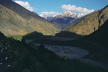 Just before Darcha the valley was widening so we could catch a glimpse of the 6.000 m peaks of Lahoul.