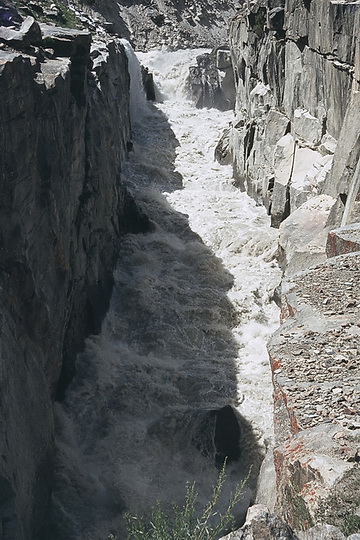 A rock barrier is forcing the Barai Kade river into a wild gorge.