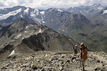 Der Weg zum Flüela Schwarzhorn ist bis zur Schwarzhornfurgga mit dem Anstieg zum Radüner Rothorn identisch mit dem Unterschied, dass auf das Schwarzhorn an schönen Wochenenden eine Völkerwanderung führt - auf dem Rothorn waren ausser uns noch zwei Gipfelbesucher.