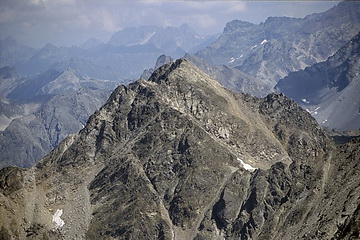 Flüela Weisshorn (3085 m) seen from the summit of Schwarzhorn. Behind Kuchenspitze (3184m) in the Verwall area. |