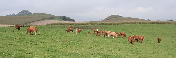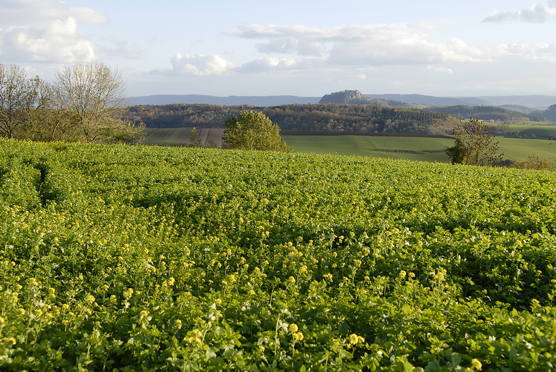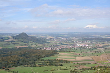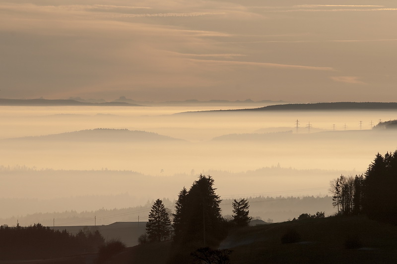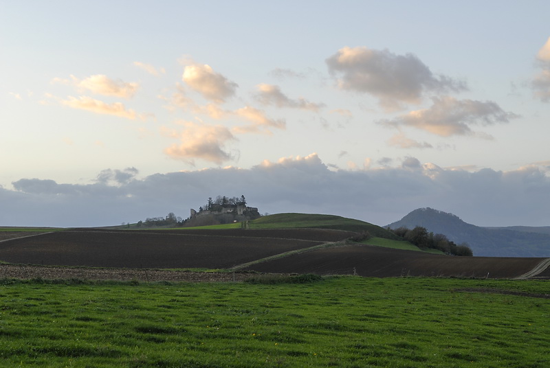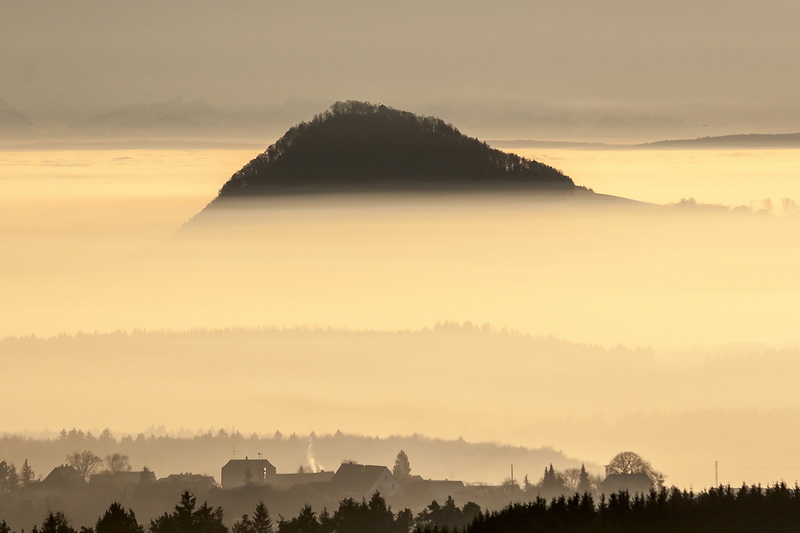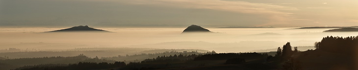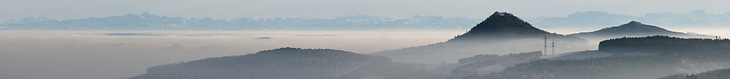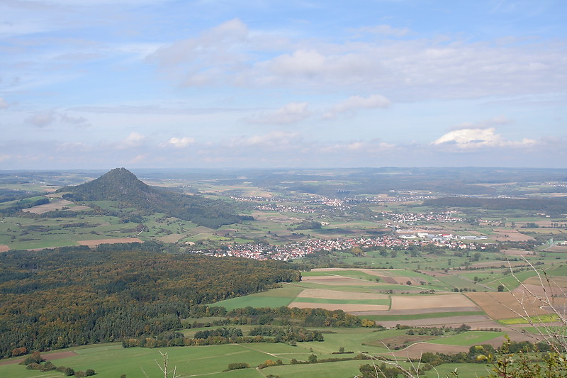 Hegau is the name of a volcanic landscape west of Lake Constance which is not only of geolocical interest. The vents of the extinct volcanoes are 643 m to 876 m high and clearly exceeding the surrounding landscape. The best places with wonderful views over this unique scenery and the alps behind are Hegaublick near the A 81 and Witthoh between Engen and Tuttlingen.
