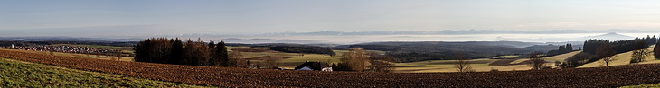 Hegaublick is situated on a pass road parallel to the motorway A 81 called Engener Steige. On clear days the panorama is covering a wide range of alpine peaks from the Allgaeu mountains in the east up to the Bernese Alps.