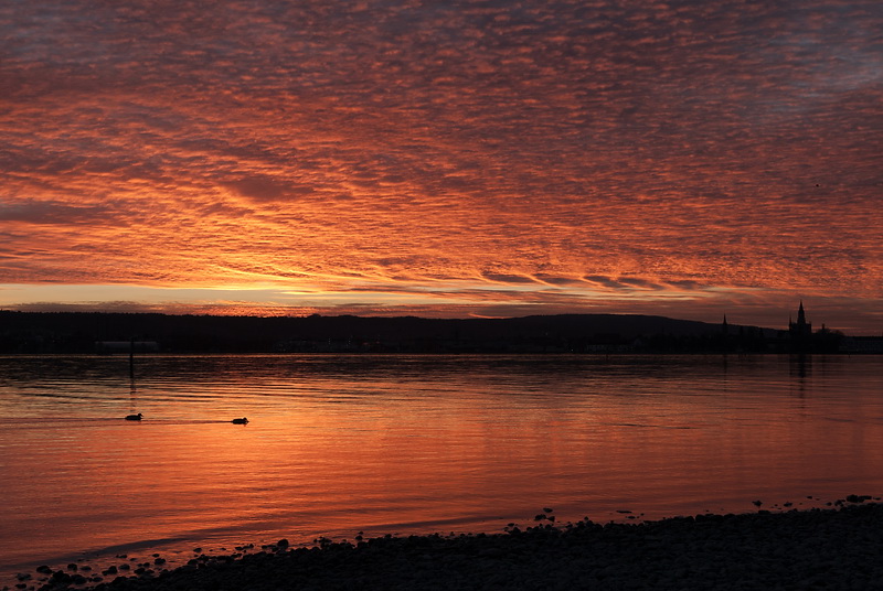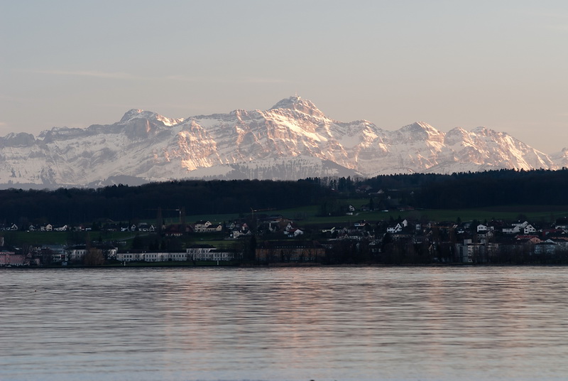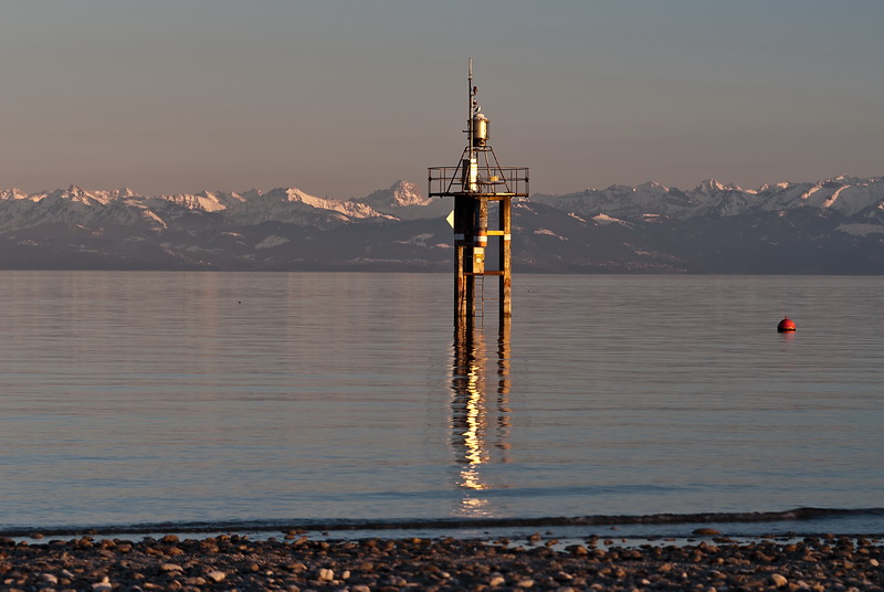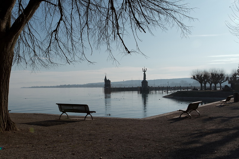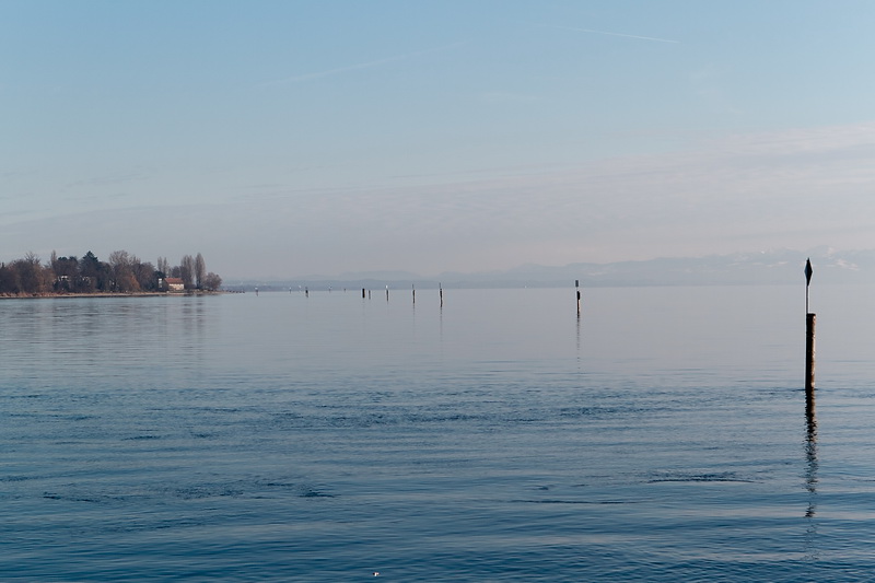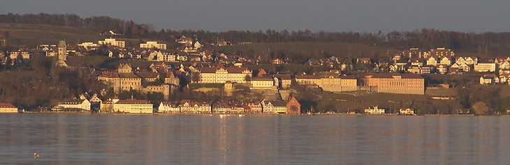 Following the lakeside path at the end of Seestrasse for about 2 kms leads to our local 'Cape Horn', the eastern end of the Bodanrück peninsula - a quiet place (during the winter months...) in a splendid scenery. On the opposite shore the impressive backdrop of Meersburg appears in the evening light.