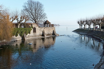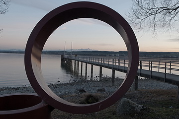 Folgt man dem Uferweg am Ende der Seestrasse weiter bis zur östlichen Landspitze des Bodanrücks erreicht man das Freibad Horn - im Winter ein Ort der Ruhe und der schönen Aussicht. Auf der gegenüberliegenden Seeseite erkennt man bereits die imposante Kulisse von Meersburg.