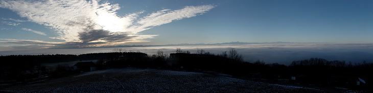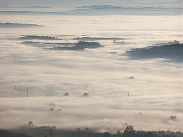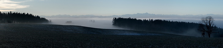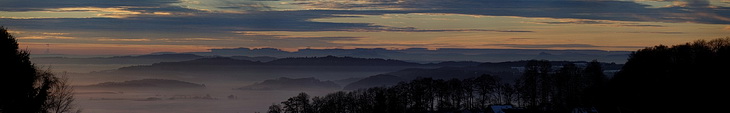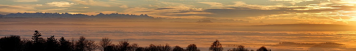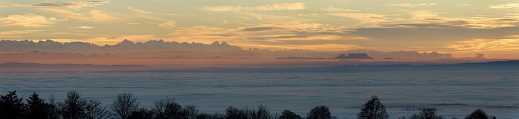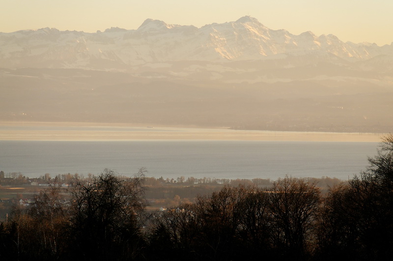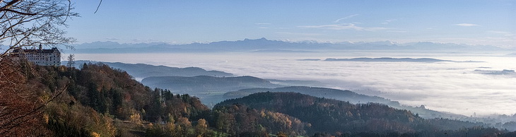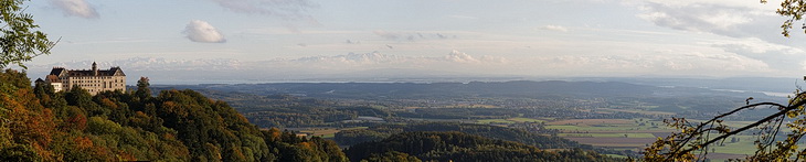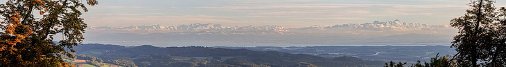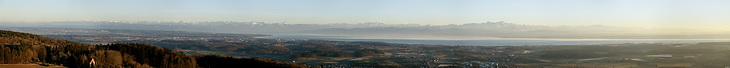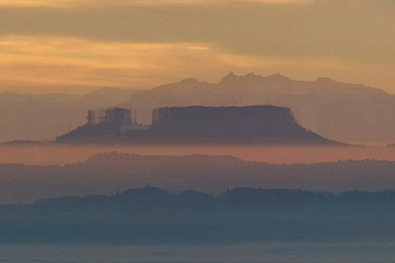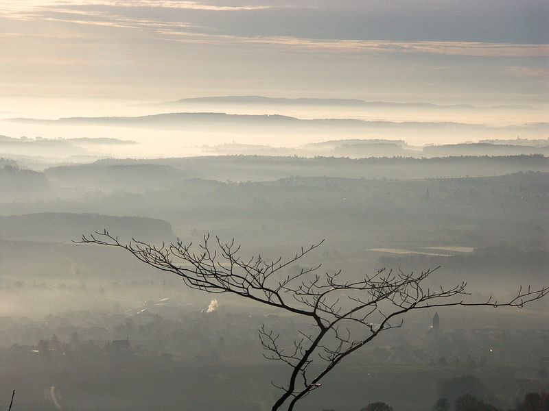 The landscape between Lake Constance and the Swabian Alb is rich in 'high' lights like Witthoh near Tuttlingen, the village of Heiligenberg or the summit of Hoechsten. The panorama covers a wide range of alpine peaks from Zugspitze to the Bernese Alps whereas the lake is often vanished in the haze or hidden by a layer of mist.