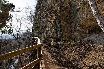 With a height of 754 m Gehrenberg is one of the highest mountains in this area. The look-out on top of it is 30 m high and offers a wide view of the lake and the nearby alps. The landslide near the top is about 100 m wide and most likely a result of the earthquake on 19th November 1911.