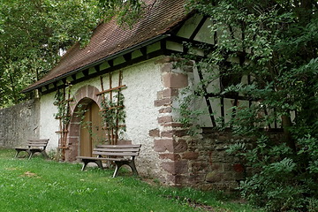Die Jakobshütte ist das ehemalige Totenhaus des Münklinger Friedhofs. Hier ganz in der Nähe stand die ursprüngliche Jakobskirche. Die erste urkundliche Nachricht stammt aus dem Jahr 830, als Graf Erlafrid von Calw seine Kirche an sein eben gegründetes Kloster Hirsau verschenkte. Der Jakobsbrunnen diente den Jakobspilgern als Rastplatz auf ihrem langen Weg nach Santiago de Compostela.