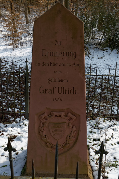 Etwas unauffälliger als das Dätzinger Schloss aber nicht weniger geschichtsträchtig: das Ulrichsdenkmal, das 1888 zum 500. Todestag des Grafensohnes Ulrich von Württemberg errichtet wurde. Der Ulrichstein aus rotem Sandstein erinnert an die Schlacht bei Döffingen, die 1388 zum Ende des Schwäbischen Städtebundes, und in der Folge zur Gründung des Herzogtums und späteren Königreichs Württemberg führte.