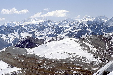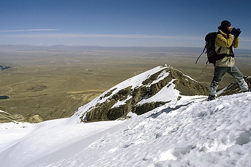 View from Chacaltaya across the Altiplano. To the north: the 6000 m peaks of the Cordillera Real.