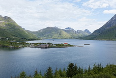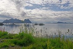 The impressions during the trip from Svolvær across the Lofoten islands to Andenes are hard to top. We are driving along the E10 to Gullesfjord where we turn north to reach Andøya island via the Andøy bridge near Risøyhamn. Andenes is the main locality of the Andøy district and situated on the northern tip of the island - a perfect place to watch the Midnight Sun.