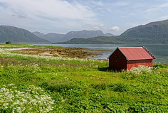 Following the coastal road north of Bodø there are several places with nice panoramic views of the landscape formed by ice-age glaciers. After 25 miles on the scenic route (including a short ferry passage across Mistfjorden) Kjerringøy is reached, an old trading place which in former times had been the wealthiest trade center in northern Norway. Kjerringøy Trading Post is part of the Nordlands Museum. It consists of 15 buildings and gives an insight into life and culture of Norwegian coastal villages in the 19th century.