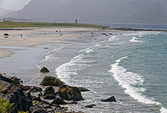One of the highlights on this journey is the 60 miles passage of Vestfjorden from Bodø to Moskenes on the Lofoten archipelago which takes about 3.5 hours. Between the obligatory stopover at Reine and Svolvær there are quite a few places along the road to stay and enjoy the extraordinary atmosphere (and take some photos) of this unique landscape. The south-western end of the Lofoten islands particularly Moskenstraumen, a tidal current between the islands of Moskenesøya und Værøya was the reference for Edgar Allen Poe's short story 'A Descent into the Maelstroem'.