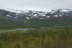 The next day starts with a 2 hours' ferry crossing from Andenes to Gryllefjord on the island of Senja. After our arrival we are following the steep and rugged coast of Senja for about 15 miles until the road turns off into the center of the island where the snow-covered mountains are still up to 900 m high but much flatter than their neighbours. The RV86 (Riksveg) belongs to the so-called National Tourist Routes (Nasjonale Turistveger) which are running through Norway with a total length of more than 1.100 miles