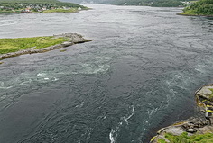 A recommendable destination in the vicinity of Bodø is Saltstraumen, the strongest tidal current in the world. About 20 miles east of the town nearly 400 cubic meters of seawater are forced through a 2 miles long and 150 m wide sound between the islands Straumen and Straumøy. Due to the flow velocity of up to 25 mph vortices are formed with diameters up to 10 m providing a unique natural spectacle.