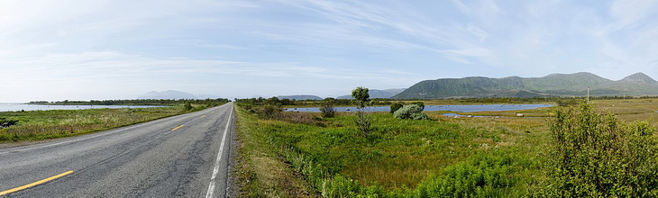 There is not much traffic as we are driving along the south coast of Andøya.