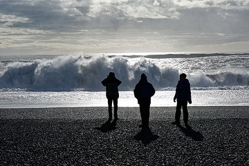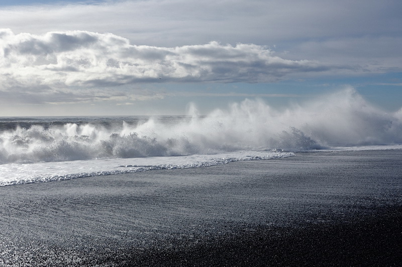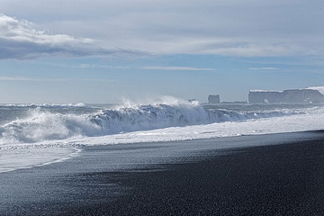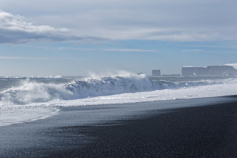 Die Basalthöhle Hálsanefshellir liegt am östlichen Ende des Strands von Reynisfjara der für seine Wellen bekannt ist, die gerade im Winter bei Flut äußerst mächtig werden können. Unbedingt ernst zu nehmen sind die deshalb die Warnschilder auf dem Weg vom Parkplatz zum Strand.