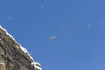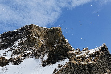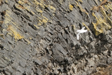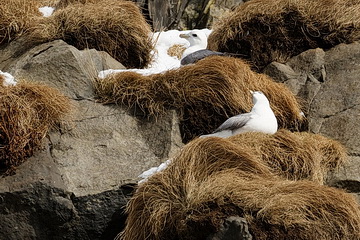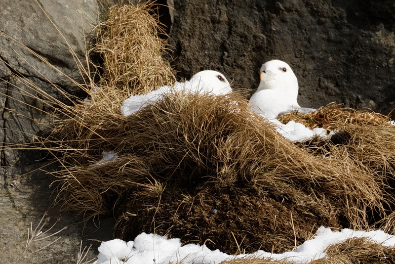 Für die Papageientaucher war es Anfang März noch zu früh, aber eine grössere Möwenkolonie brütete bereits in den Felsen - hoch über dem Strand und ungestört von uns zahlreichen Touristen.