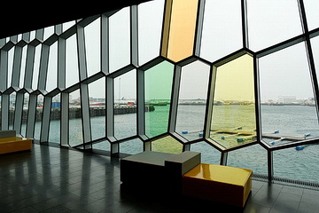 Wesentlich angenehmer als in der Fussgängerzone war es in der Harpa, dem Kongress- und Konzerthaus, das durch seine interessante Architektur immer einen Besuch wert ist. Als schliesslich auch auf dem Perlan, dem Warmwasser-speicher der Stadt mit Restaurant und Aussichtsplattform, so gut wie nichts zu sehen war, verlegten wir das restliche Tagesprogramm in die Blaue Lagune - zum Aufwärmen.