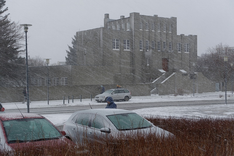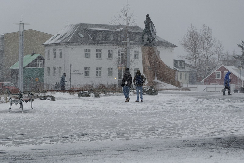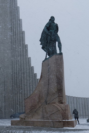 Auf einem etwa 300 m hohen Pass zwischen Selfoss und Reykjavik war es dann soweit. Die während der Reise schon öfters erwähnte Windgeschwindigkeit von 20 m/s war erreicht und die Sicht wurde durch den Triebschnee zunehmend schlechter. Auch in der Stadt selbst war es nicht wesentlich angenehmer aber dank Uli, unserem Reiseleiter und Fahrer, wurde auch die Stadtrundfahrt zu einer interessanten Reise durch die Geschichte und Gegenwart dieser faszinierenden Insel.