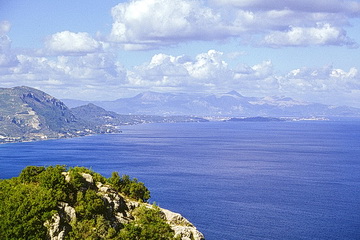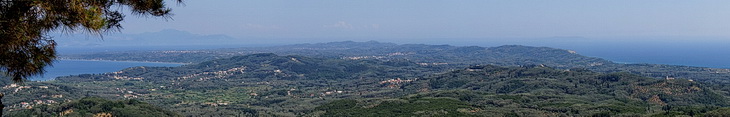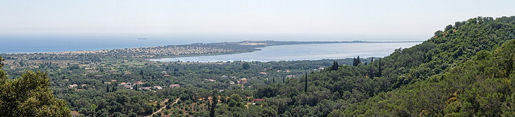 Bei Linia - an der Hauptstrasse von Korfu nach Lefkimi - folgt man der kurvigen Strasse hinauf nach Chlomos, von wo man bereits einen schönen Blick zurück auf die Lagune und die Westküste hat.