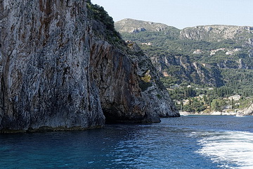 At the port of Paleokastritsa as well as on the beach of Agios Spyridon there is no way around a boat trip along the coast. Exploring the rocks and caves on the glass-bottomed boat, one of the numerous small boats or even by fair means in a pedal boat is a fascinating experience and can be recommended in any case.